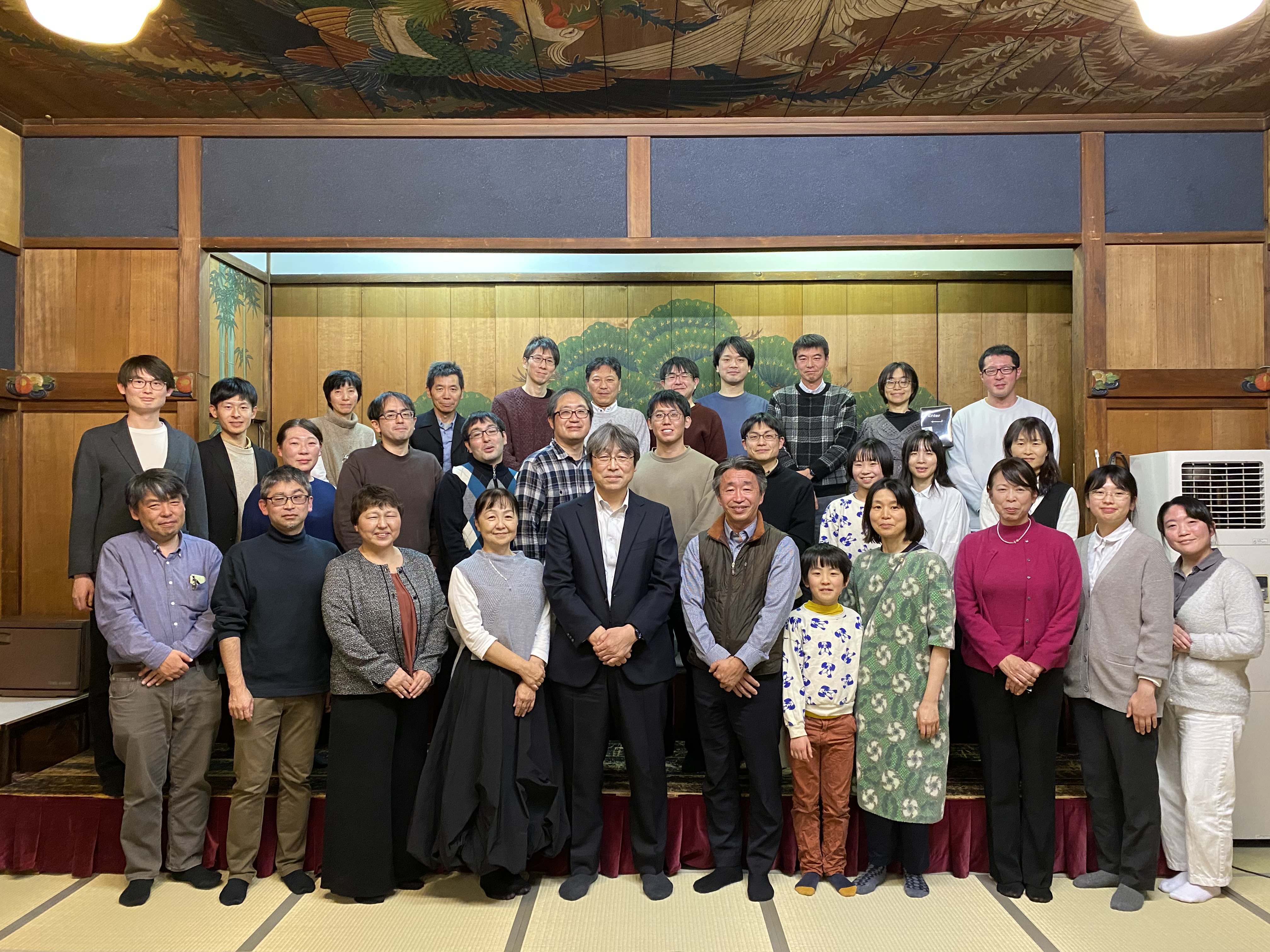 会場は松本館の大広間(有形登録文化財)で、天井絵などのしつらえに囲まれ優雅な雰囲気の中、1年を振り返りました。